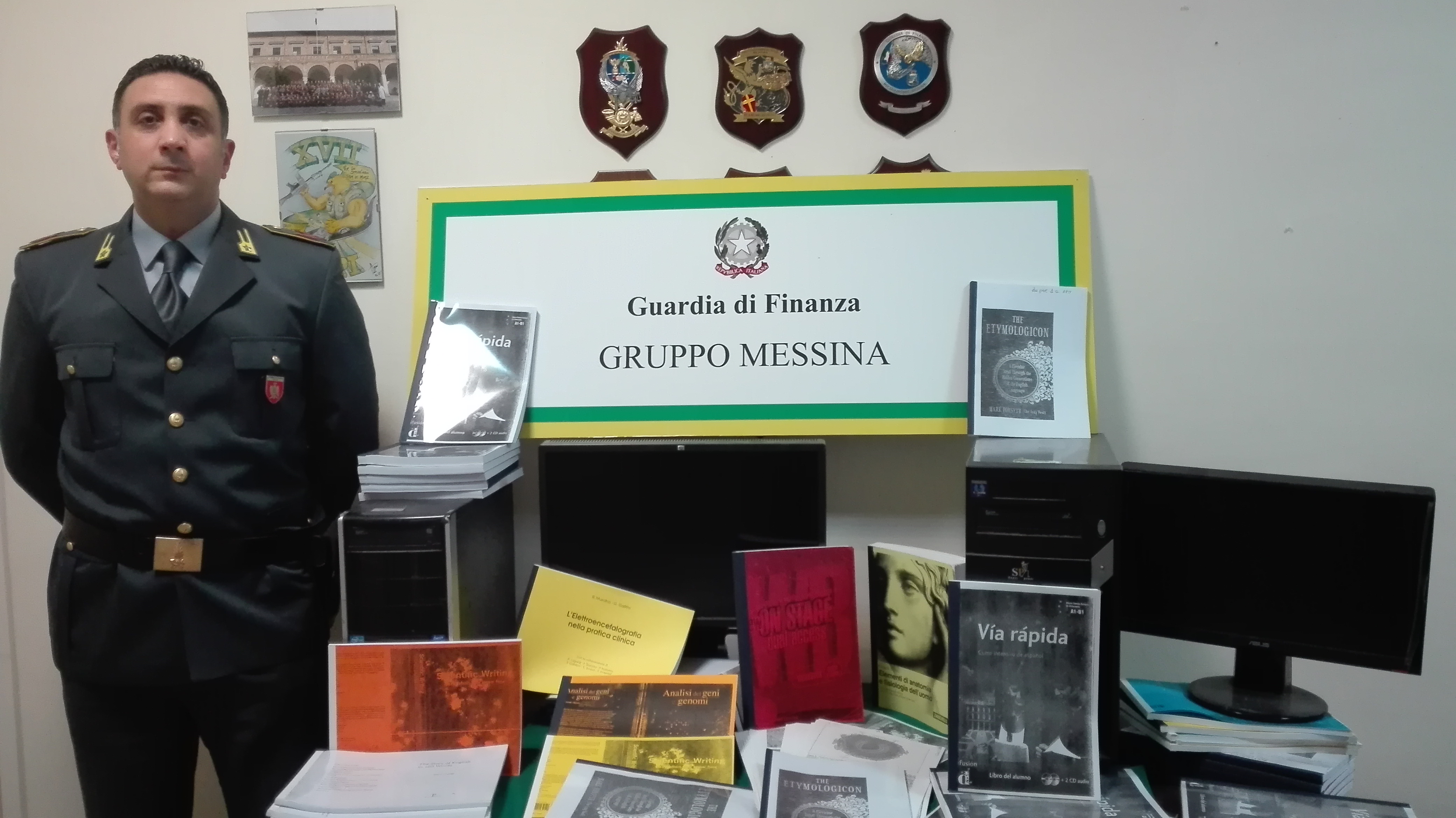 La Guardia di Finanza del Gruppo Messina, ha proceduto ad effettuare un sequestro anti pirateria, in alcune copisterie del centro città, situate nei pressi del plesso principale dell’Università di Messina. Oltre a centocinquanta libri già pronti, sono stati bloccati migliaia di file, con riferimento a quasi duemila testi universitari, la cui riproduzione è da considerarsi illecita. Fra i libri presenti, si sono rintracciati, trattati di: economia, medicina, diritto e lingue straniere, tutti o in fase di stampa o già fotocopiati.
