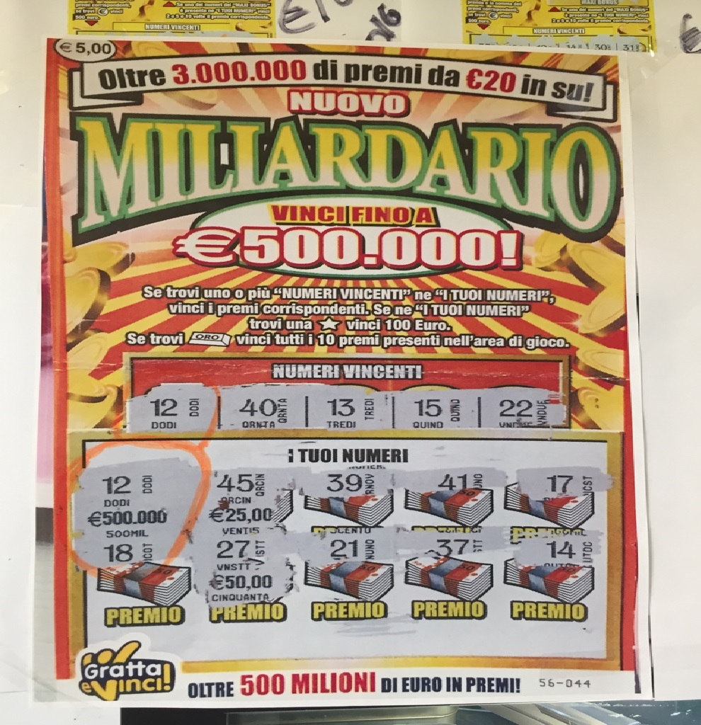 A Milazzo (ME): sono stati vinti 500mila euro, con un gratta e vinci da 5 euro. Il tagliando vincente è stato comprato dal fortunato acquirente nella rivendita di Dora Minuti che è aperta 24 ore su 24 e si trova in via XX luglio.