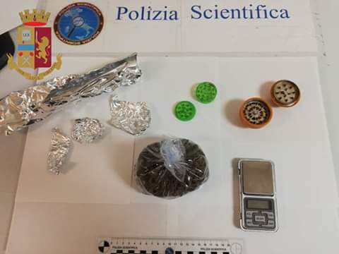 La Polizia ha arrestato a Messina Antonino Pollicino, 19 anni per spaccio di droga. Nella sua abitazione gli agenti hanno trovato 100 grammi di marijuana, un grinder utilizzato per tritare la sostanza stupefacente, un bilancino di precisione e della carta stagnola per il confezionamento in dosi.