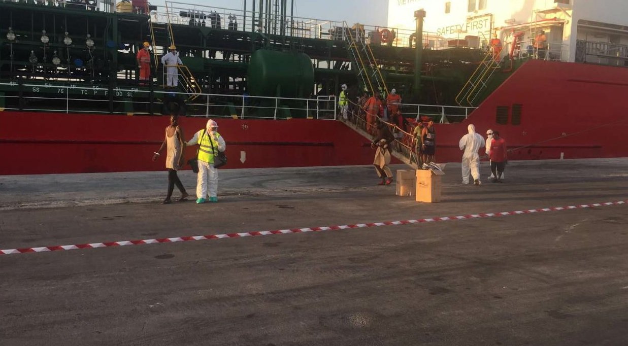 Ci sono due positivi al Covid 19 tra i 108 migranti sbarcati ieri sera dalla nave mercantile ‘Cosmo’ nel porto di Pozzallo (Ragusa).