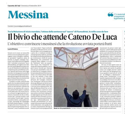 “Bene molto bene! Solo da una reale pax augustea tra forze politiche e sociali, tra stampa e social, tra Amministrazione e Dipendenti onesti (stragrande maggioranza in verità!)… potranno ricrearsi le condizioni per una rinascita di Messina e del suo territorio. Ma dovra’ essere una volontà concreta e non a giorni alterni. Dovrà essere lo spirito di gruppo a prevalere invece che gli interessi dei singoli. E soprattutto dovrà esserci reciproca fiducia e stima (entrambe da ri-conquistare bilateralmente!!). Difficile? Di più!! Ma non impossibile! Intanto bravo Lucio”.