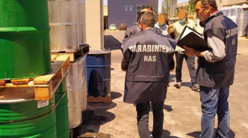 Nel corso di servizi svolti sul versante tirrenico messinese, i militari del Nas di Catania, in collaborazione con i colleghi della Compagnia di Sant’Agata Militello, hanno individuato un’industria alimentare dedita alla produzione di succhi d’agrumi, ove venivano svolte alcune lavorazioni senza il rispetto delle norme igienico-sanitarie. Già al primo accesso saltava subito all’occhio dei carabinieri l’irregolare stoccaggio, nel piazzale interno dello stabilimento non autorizzato sanitariamente, di numerosi fusti metallici contenenti succo concentrato allo stato di congelato, privi di coperchi, alla diretta esposizione della luce e degli agenti atmosferici. Per tale motivo si è proceduto al sequestro del succo, contenuto all’interno di n. 107 fusti, poiché ritenuti in cattivo stato di conservazione e non più utile per l’immissione nel circuito produttivo.