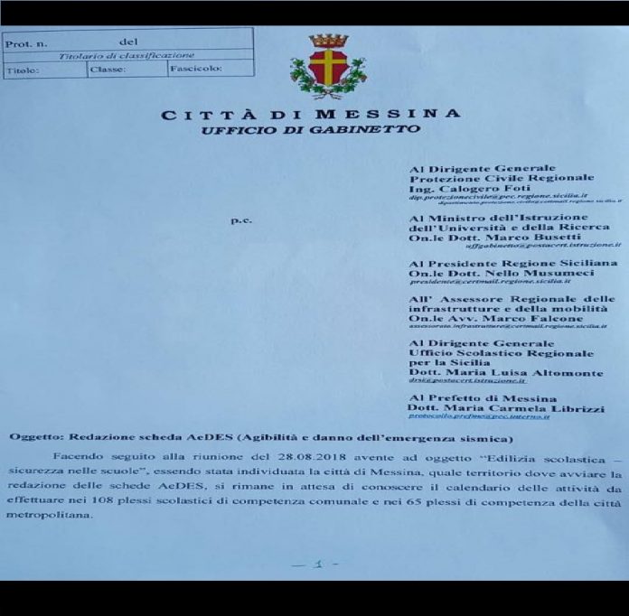 “Abbiamo convocato tutti i sindaci, i dirigenti scolastici ed il responsabile del Provveditorato degli studi di Messina per una riunione operativa lunedì 3 settembre ore 12:00 a Palazzo dei Leoni”.