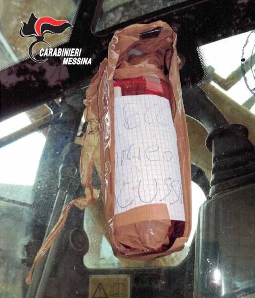 Nella denuncia veniva formalizzato il rinvenimento di una bottiglia di plastica contenente del liquido infiammabile, un accendino ed un biglietto recante una frase manoscritta in dialetto siciliano dal chiaro tenore estorsivo “CECCATI U AMICO BUONO DI CUSSA” (letteralmente “CERCATI UN AMICO BUONO DI CORSA”), che era stata attaccata alla maniglia di una macchina escavatrice.
