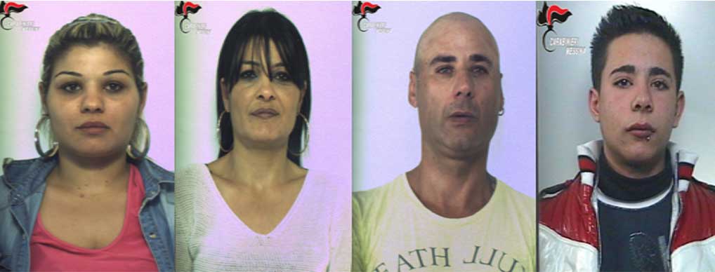 I soggetti colpiti dal provvedimento di misura cautelare sono: Francesco Portogallo, messinese del 1971 (custodia cautelare in carcere), Vincenzo Burrascano, messinese del 1995 (custodia cautelare in carcere), Annunziata Portogallo, messinese del 1991 (misura cautelare degli arresti domiciliari) Paola Giunta, del 1972, residente a Messina (misura cautelare degli arresti domiciliari) Giuseppa Burrascano, messinese del 1997 (misura cautelare dell’obbligo di dimora) e Giuseppa Morgana, messinese del 1989 (misura cautelare dell’obbligo di dimora), tutti già noti alle Forze dell’Ordine.