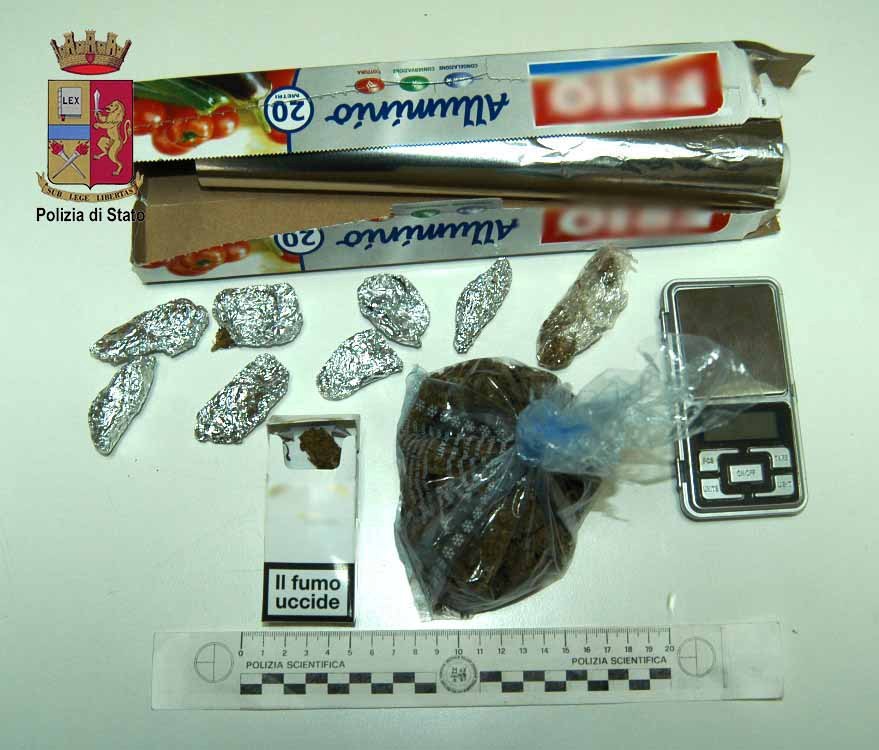Una maggiore quantità, circa 50 grammi, la nascondeva sopra l’armadio di casa, nella sua camera. I poliziotti che hanno perquisito la sua abitazione hanno sequestrato un bilancino di precisione e carta stagnola, utilizzati per il confezionamento delle singole dosi, in bella vista sulla scrivania della stessa camera.