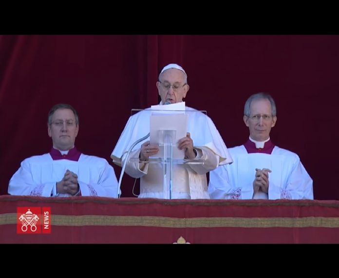 Oggi Papa Francesco ha letto il messaggio di benedizione Urbi et Orbi da piazza San Pietro (Città del Vaticano), dicendo: «cari fratelli e sorelle, buon Natale»!