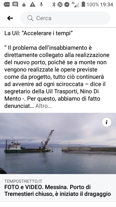 “Questa mattina sono iniziati i lavori di dragaggio al Porto di Tremestieri – dichiara Nino Di Mento segretario UIltrasporti Messina – dove le avverse condizioni meteo marine in questo ultimo periodo hanno di fatto portato masse sabbiose provenienti dall’area di cantiere del nuovo Porto, all’interno degli attuali approdi, rendendoli operativi al 50%, attraverso l’utilizzo di un solo scivolo”.