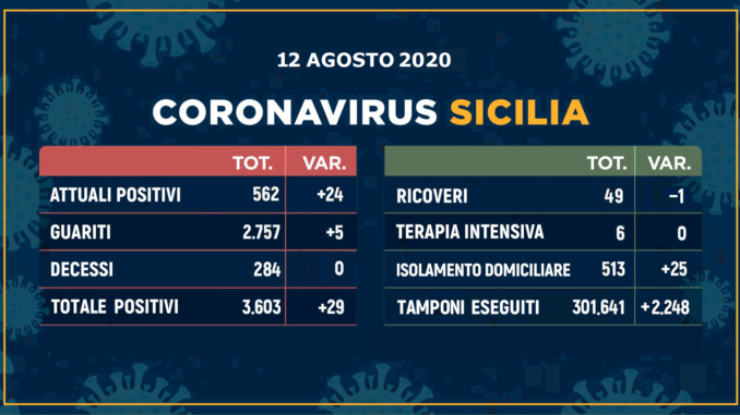 Oggi niente migranti tra i nuovi positivi, in tutto 29, così distribuiti per provincia: 10 a Catania, 7 a Palermo, 6 a Ragusa, 3 a Siracusa, 2 ad Agrigento e 1 a Trapani.