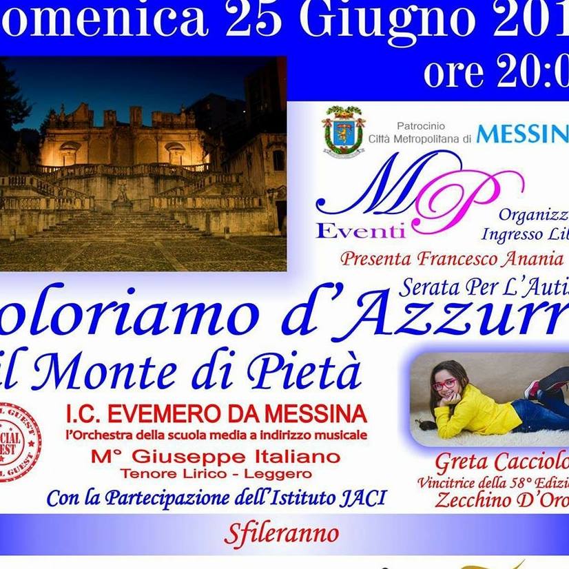 Con lo scopo di presentare la manifestazione dal titolo: “Coloriamo d’azzurro il Monte di Pietà”, domani, lunedì 19 giugno presso la Sala Commissioni di Palazzo Zanca, i rappresentanti dell’Associazione “Bambini Speciali”, terranno un incontro con i giornalisti e quanti volessero prendervi parte.