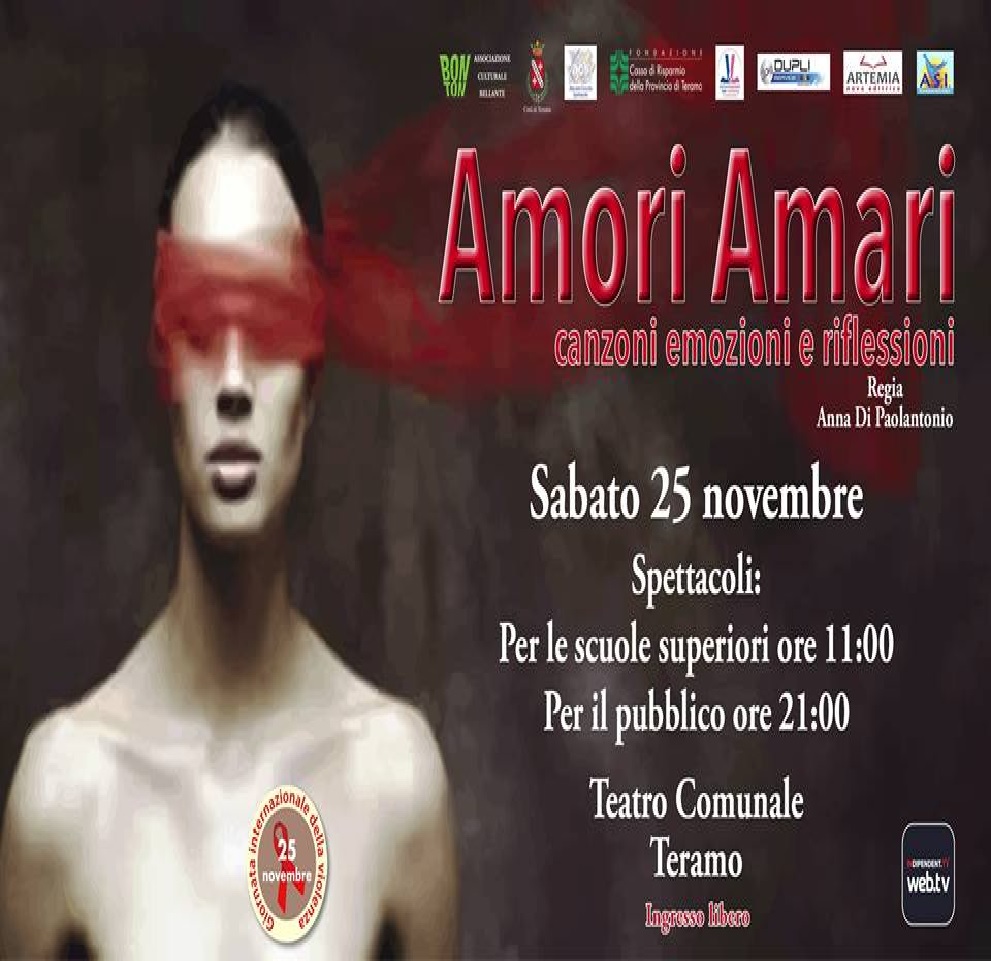 In concomitanza con la “Giornata Internazionale per l’eliminazione della Violenza sulle Donne”, l’Associazione culturale “Bon Ton” di Bellanta di cui Anna Di Paolantonio è la presidente, porterà in scena al Teatro comunale di Teramo uno spettacolo dal titolo -Amori Amari- che è legato al vissuto personale della responsabile del sodalizio che organizza questo appuntamento.
