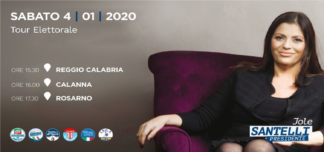 “Dopo la bella partecipazione di questa mattina, nel pomeriggio continuo i miei incontri”. Scrive così, la candidata del centro destra alla Presidenza della Regione Calabria in vista delle Elezioni del 26 gennaio, l’avvocato Jole Santelli.