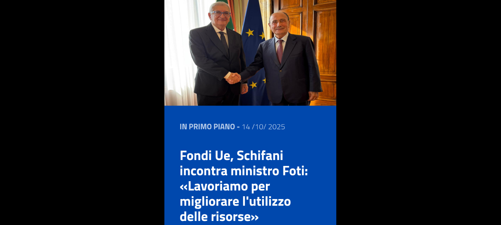 Il presidente della Regione Siciliana, Renato Schifani, in qualità di coordinatore della Commissione Affari europei ed internazionali della Conferenza delle Regioni, ha incontrato oggi a Roma il ministro degli Affari europei e delle Politiche di coesione, Tommaso Foti