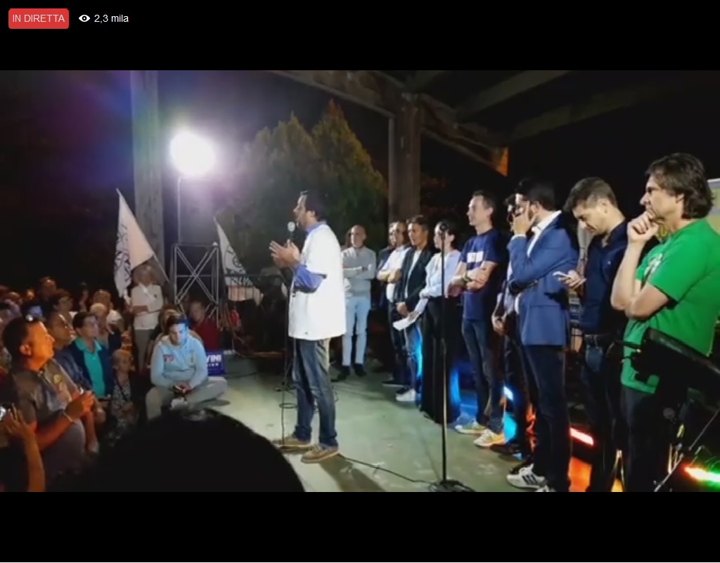 Salvini: “vediamo, se riusciamo a mettere insieme la gente perbene che vuole cambiare. Via, mafia, ‘ndrangheta e camorra. Nell’Italia che ho in testa io, non esiste più il modulo per iscrivere i figli all’asilo ed a scuola, dove c’è scritto genitore 1 e genitore 2”.