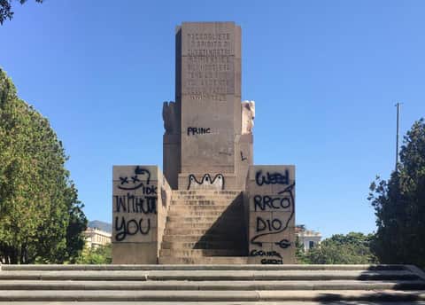 De Luca continua: “grazie alla nostra Polizia Giudiziaria sono state individuate le autrici di questo imperdonabile gesto: sono due tredicenni! Spregevole gesto quello compiuto ieri da ignoti nei confronti del Monumento ai Caduti sito in Piazza Unione Europea. Il Monumento, che ricorda coloro che hanno sacrificato la loro vita in nome della Patria, per garantire la libertà di cui oggi godono coloro che si permettono di commettere simili azioni, è stato deturpato con frasi blasfeme, simboli e disegni di vernice spray che hanno coperto estese porzioni di superficie e dei bassorilievi. Poiché le ingiuriose scritte sono state fatte nella parte posteriore del Monumento, alquanto nascoste alla vista dagli alberi che lo circondano, la segnalazione dell’Assessore Caruso, accortosi del deplorevole gesto, è stata fatta intorno alle ore 10.30 di giorno 25 giugno u.s. al corpo di guardia della polizia Municipale di Palazzo Zanca”.