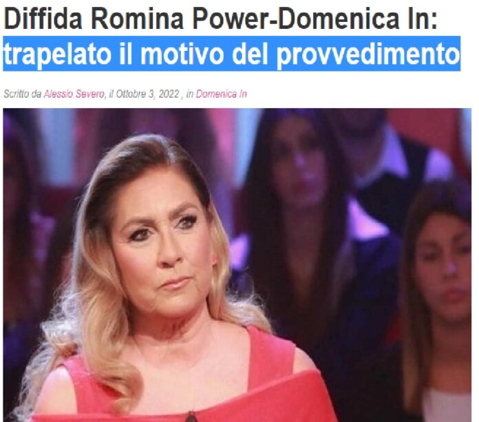 A dir poco clamoroso quello che è successo il 02 ottobre 2022 su Rai1 a Domenica In dopo le 14.00 tra la padrona di casa Mara Venier e Loredana Lecciso, ospite in studio, con la prima che ha chiesto alla seconda di non nominare Romina Power dato che l’ex moglie di Al Bano aveva diffidato il suo programma. Nella medesima data, durante la serata…, TvBLog ha svelato il reale motivo secondo il quale la cantante ha chiesto di non parlare di lei: la Power era preoccupata che la partecipazione della Lecciso fosse stato un pretesto per parlare di lei, dei suoi figli, del suo lavoro e della tournee con Al bano, e aveva chiesto alla produzione di evitare questo per timore che potesse ledere alla sua immagine. Però secondo quanto rivelato, le sue preoccupazioni erano infondate, dato che Domenica In non aveva intenzione di parlare di lei, ma si voleva concentrare solo sull’ospite, appunto Loredana Lecciso.