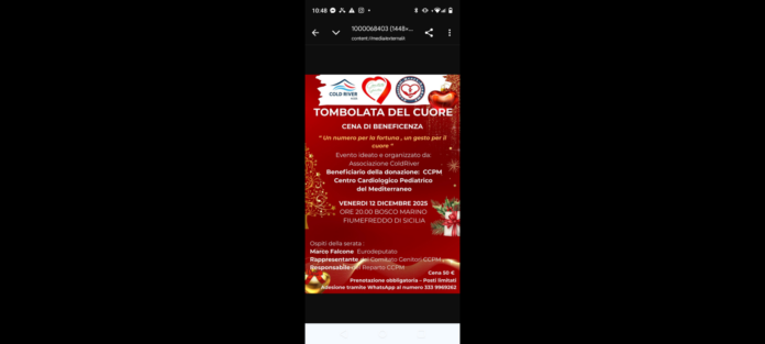 A Fiumefreddo di Sicilia la solidarietà si prepara a diventare protagonista: l’Associazione Cold River presenta la ‘Tombolata del Cuore’, l’iniziativa benefica che venerdì 12 dicembre, alle ore 20.00, al Bosco Marino, riunirà cittadini, istituzioni e sostenitori per una serata dedicata alla raccolta fondi in favore del Centro Cardiologico Pediatrico del Mediterraneo (CCPM) di Taormina, struttura di riferimento per la cura dei bambini affetti da patologie cardiache
