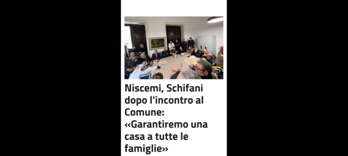 «Durante la riunione abbiamo analizzato vari aspetti della situazione, assicurando l’assistenza sanitaria, sollecitando il ripristino dell’erogazione del gas metano in paese e facendo in modo che i ragazzi possano continuare a frequentare regolarmente le lezioni scolastiche. Sul fronte abitativo, ci stiamo facendo carico di realizzare un programma di ricollocazione delle famiglie rimaste senza casa, alcune in alloggi già esistenti, altre in immobili di nuova edilizia. Questo è l’impegno della Regione». Ha concluso Schifani.