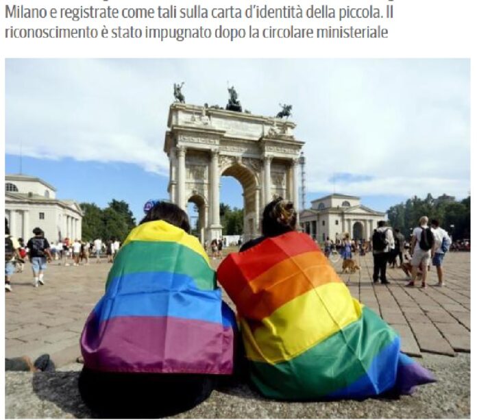 «Abbiamo ricevuto una notifica dalla polizia locale in cui ci veniva comunicato che secondo la Procura non sono più la madre di mia figlia… siamo rimaste scioccate: in questi giorni abbiamo seguito le notizie con molta apprensione ma non ci aspettavamo un annullamento retroattivo dei riconoscimenti già fatti». Carolina, 41 anni, e la moglie Elena, 34, sono le madri di una bambina nata a gennaio a Milano, registrate come tali sulla carta d’identità della piccola… ma la Procura di Milano ha chiesto l’annullamento dell’atto di nascita e con esso dei documenti della bimba: il loro, infatti, è uno dei quattro riconoscimenti impugnati dopo la circolare del ministero dell’Interno che imponeva di sospendere le «registrazioni alla nascita per i figli delle coppie gay, considerandole contrarie all’ordine pubblico».