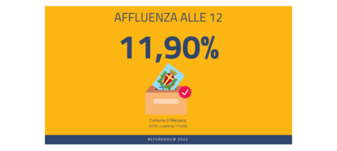 Alle ore 12 di oggi, domenica 22 marzo, l’affluenza alle urne per il Referendum sulla Giustizia 2026 nel Comune di Messina risulta pari al 11,90 per cento, con 20.783 votanti su un totale di 174.660 elettori registrati fino a questo momento.