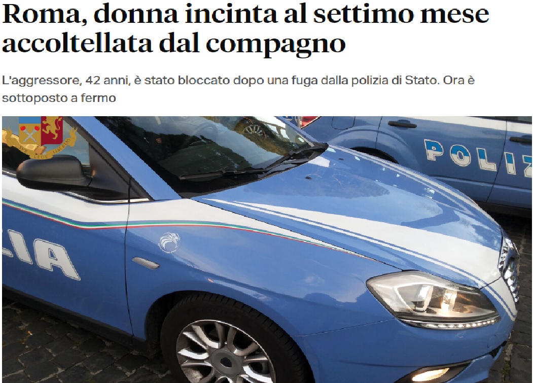 Ancora una storia di violenza sulle donne a Roma… questa volta vittima è stata una trentaduenne incinta, al settimo mese di gravidanza: ad aggredirla in casa, davanti alla madre di lei, il suo compagno che l’ha lasciata sanguinante sul pavimento per poi scappare. Una fuga durata mezza giornata…, a bloccarlo, a notte inoltrata, è stata la polizia di Stato con gli investigatori della squadra mobile ormai sulle sue tracce. Pur in gravi condizioni, fortunatamente né la mamma e né la figlia che porta in grembo, sono in pericolo di vita.