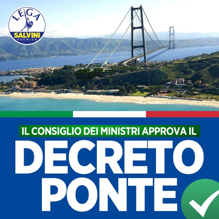 Approvato il Decreto Ponte: il Consiglio dei Ministri ha dato il via libera a un testo che consente l’immediato riavvio del percorso di progettazione e realizzazione dell’opera. Rinasce così la Società Stretto di Messina che avrà una nuova e più moderna governance. È prevista una solida partecipazione del Mef e del Mit, a conferma dell’importanza che il governo attribuisce al collegamento stabile tra Calabria e Sicilia.