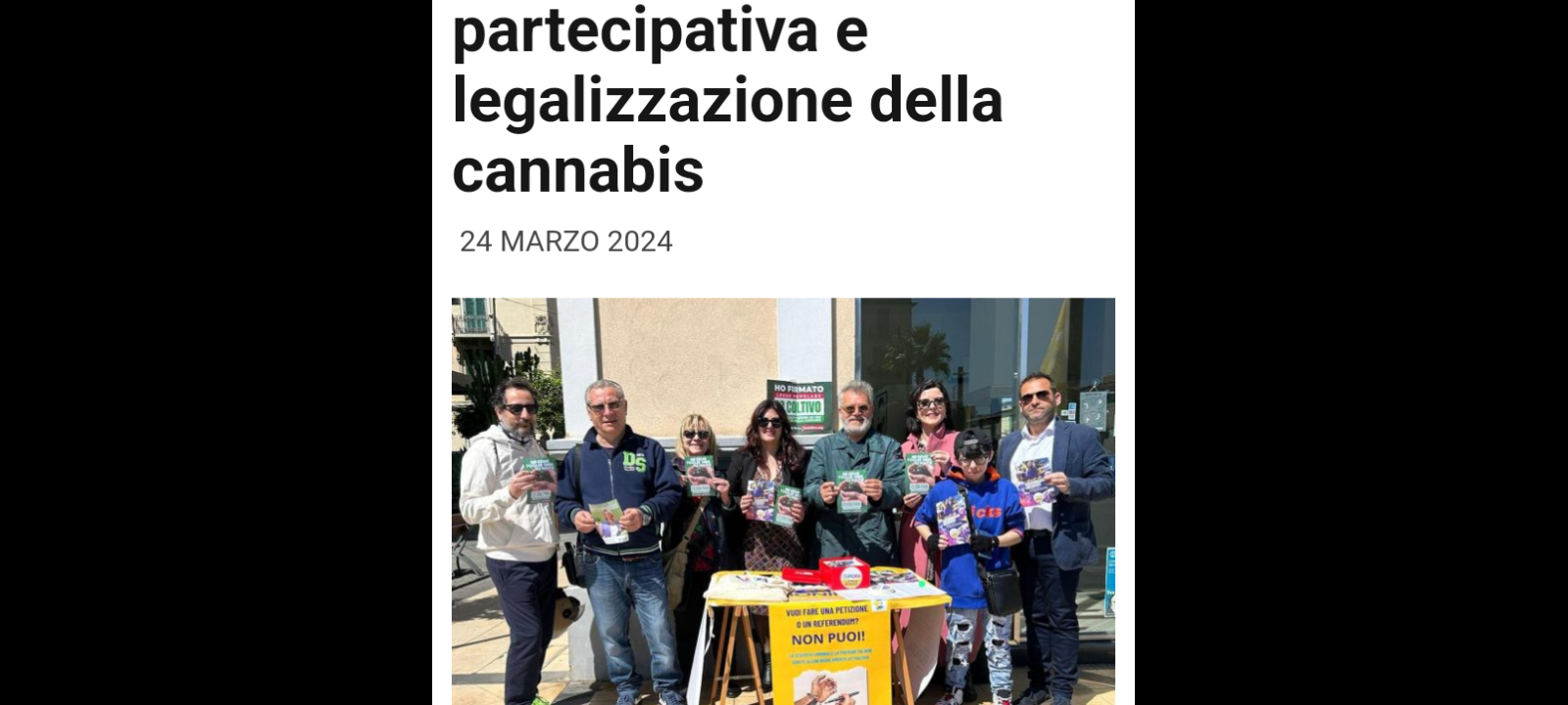 Come ogni domenica anche ieri 24 marzo 2024 a Messina in Piazza Cairoli.., vi è stato spazio per il banchetto dedicato alla raccolta firme degli appelli promossi dai membri del Gruppo Più Europa, che includono richieste per una rivoluzione europea, la legalizzazione della cannabis e la democrazia partecipativa.