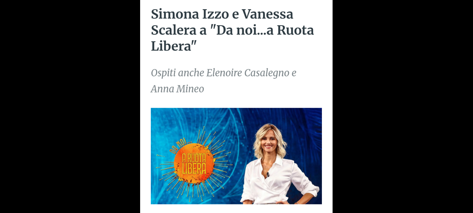 “DA NOI… A RUOTA LIBERA”, È UNA TRASMISSIONE CONDOTTA DA FRANCESCA FIALDINI... CON AL CENTRO, COME SEMPRE, LE INTERVISTE DELLA CONDUTTRICE AI PROTAGONISTI PIÙ ATTUALI DEL MONDO DELLO SPETTACOLO ACCANTO AI RACCONTI DI STORIE VERE, INTENSE ED ESEMPLARI DI PERSONE COMUNI CAPACI DI DARE UNA SVOLTA ALLA PROPRIA VITA