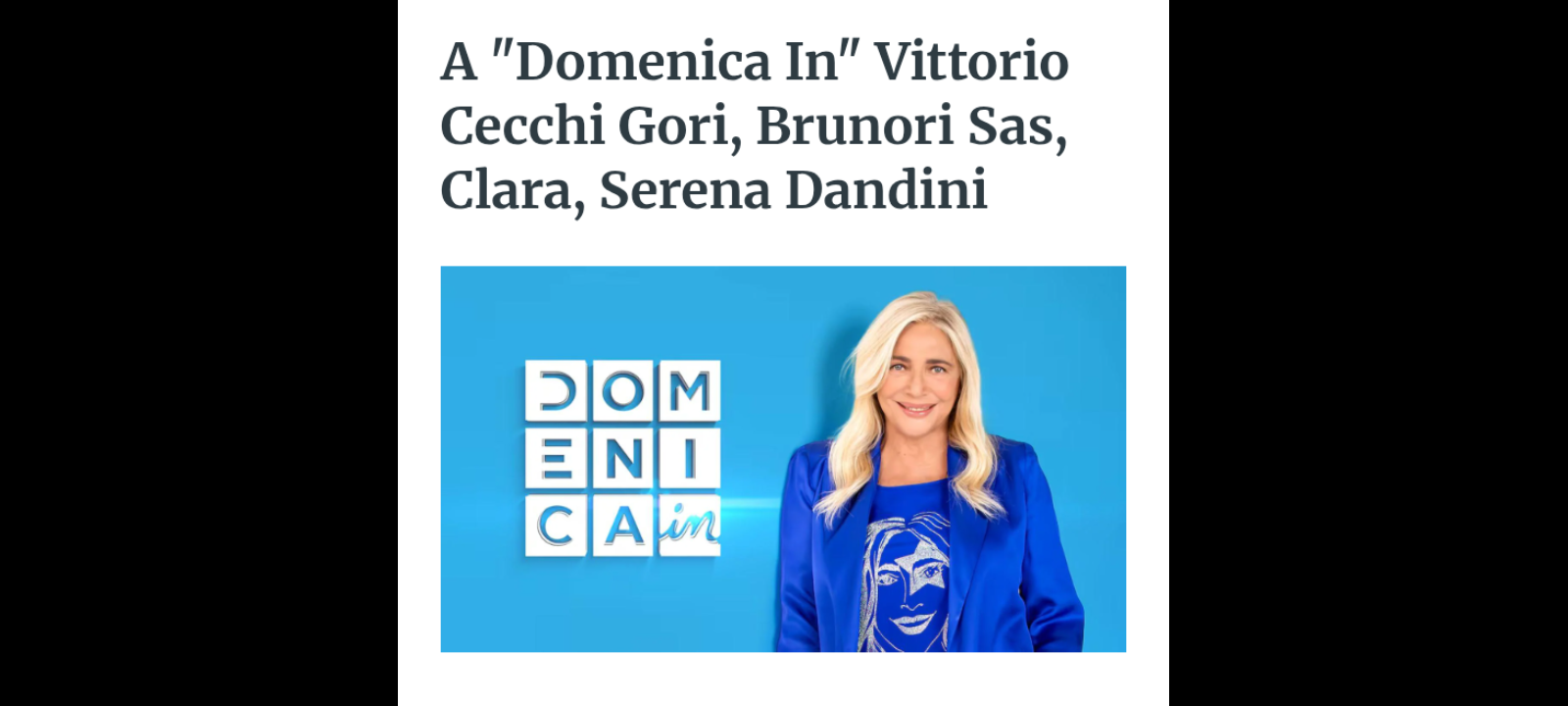 Domenica 9 marzo, dalle 14 alle 17.10 su Rai1 e Rai Italia, in diretta dagli Studi “Fabrizio Frizzi” di Roma, andrà in onda “Domenica In” condotta da Mara Venier