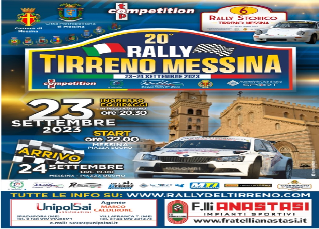 Dopo alcune edizioni lontano dalla città dello Stretto, tornerà a Messina il “Rally del Tirreno”, 20esima edizione della manifestazione automobilista organizzata da Top Competition, con il supporto della Delegazione ACI Sport Sicilia e dell’Automobile Club di Messina ed in partnership con la Città Metropolitana di Messina.
