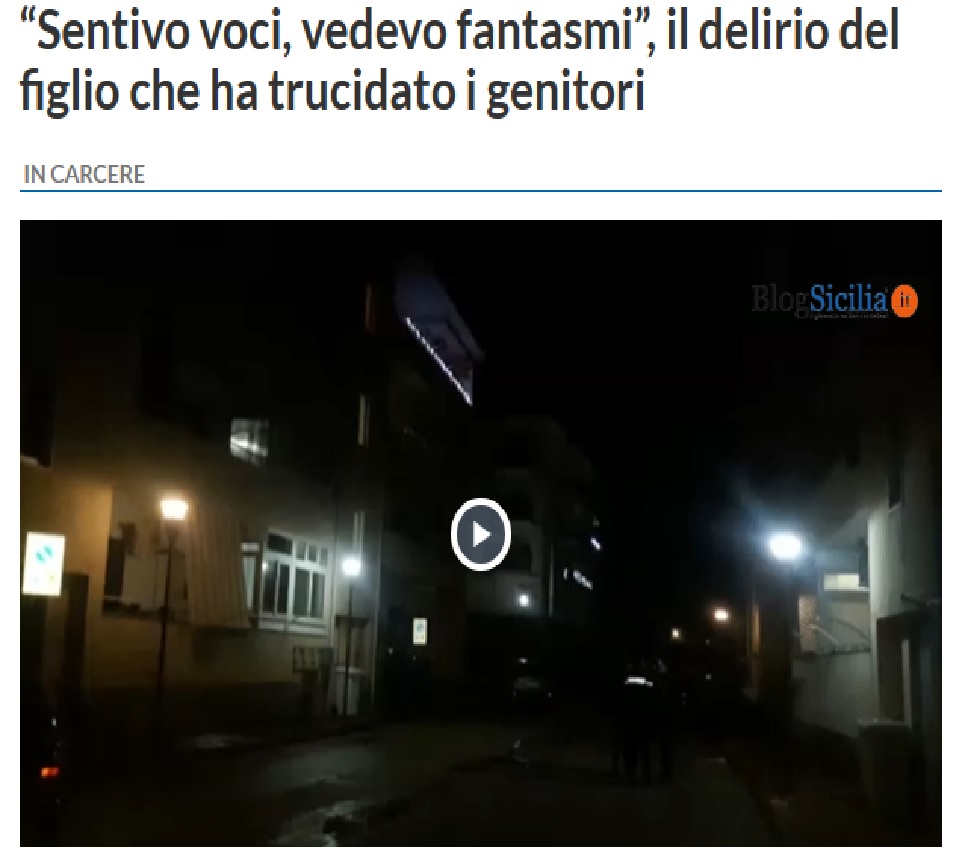 Dopo un delirante racconto di voci e fantasmi, Salvatore Seidita, 34 anni, non ha tecnicamente confermato di aver ucciso con una mannaia da macellaio i propri genitori, Giuseppe Sedita e Rosa Sardo a Racalmuto, nell’Agrigentino. Una duplice omicidio efferato come non mai visto che i corpi dei due genitori sono stati martoriati con decine di fendenti. Una violenza incontrollata da parte del figlio.