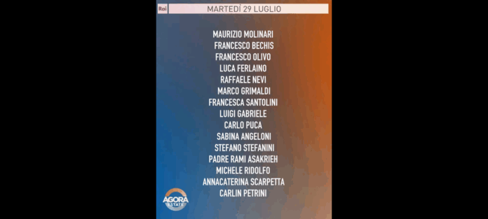 Ospiti: ‘Stefano Stefanini (Ispi); Maurizio Molinari (La Repubblica); Marco Grimaldi (Alleanza Verdi e Sinistra); Raffaele Nevi (Forza Italia); Francesco Olivo (La Vanguardia); Francesco Bechis (Il Messaggero); Luca Ferlaino (SocialCom); Michele Ridolfo (Wonderful Italy); Annacaterina Scarpetta (giornalista e globetrotter); Francesca Santolini (La Stampa); Luigi Gabriele (presidente Consumerismo); Carlo Puca (giornalista)’.