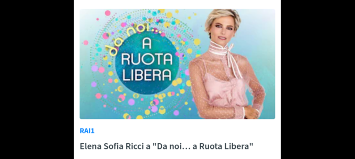 È Elena Sofia Ricci, protagonista della serie di Rai1 “Ninfa Dormiente – I Casi di Teresa Battaglia” in cui presta il volto alla profiler dei romanzi di Ilaria Tuti, l’ospite di Francesca Fialdini a “Da noi… a Ruota Libera”, il programma realizzato dalla direzione Intrattenimento Day Time in collaborazione con Endemol Shine Italy, in onda domenica 3 novembre alle 17.20 su Rai1.