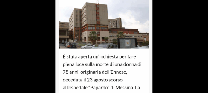 È stata aperta un’inchiesta per fare piena luce sulla morte di una donna di 78 anni, originaria dell’Ennese, deceduta il 23 agosto scorso all’ospedale “Papardo” di Messina: i magistrati della Procura della Repubblica di Messina, hanno aperto un’inchiesta sul citato decesso.