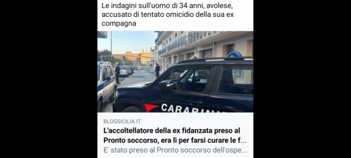 E’ stato preso al Pronto soccorso dell’ospedale Di Maria di Avola il 34enne avolese, fermato dai carabinieri per il tentato omicidio della sua ex fidanzata, accoltellata nel pomeriggio di ieri a Canicattini Bagni, nel Siracusano, poco dopo essere uscita dal lavoro.