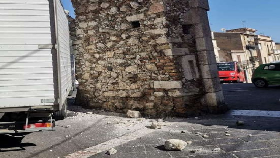 E’ stato transennato dai vigili del fuoco lo storico arco di porta Messina, noto accesso del corso Umberto, via principale di Taormina.