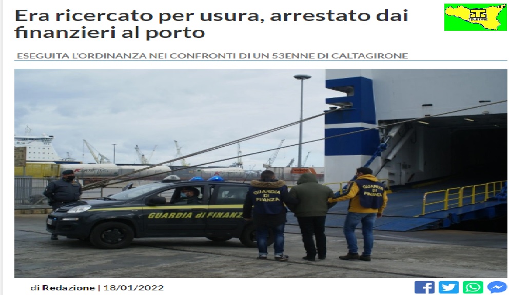 In particolare, le fiamme gialle del 1° nucleo operativo metropolitano del gruppo di Palermo, impegnate nel più ampio dispositivo finalizzato alla prevenzione e repressione dei traffici illeciti nell’area portuale procedendo al controllo del flusso dei passeggeri e dei mezzi in transito al porto di Palermo, hanno individuato un soggetto che risultava gravato dalla misura cautelare degli arresti domiciliari per il reato di usura, in concorso con altri, emessa dall’autorità giudiziaria e non eseguita l’uomo risultava irreperibile.