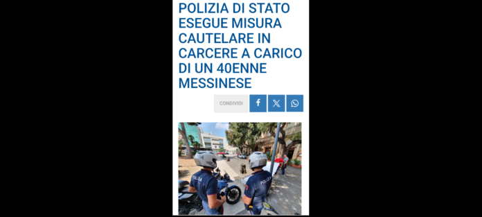 Eseguita nei giorni scorsi dai poliziotti delle Volanti della Questura di Messina la misura cautelare di massimo rigore adottata con ordinanza del Giudice per le indagini preliminari del Tribunale di Messina, su proposta della Procura della Repubblica presso il Tribunale di Messina, a carico di un quarantenne messinese fortemente indiziato dei reati di maltrattamenti in famiglia e lesioni personali.