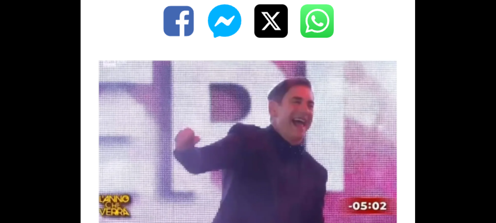 “Liorni che esulta con questo sottofondo mi spezza ”Centinaia i commenti ironici: “TeleMeloni? Una garanzia”, “Allora avevo sentito bene”, “A te e famiglia”, “E da Reggio Calabria è tutto”, “RaiUno regala sempre emozioni”, “Questo rimarrà nella storia”, “Si prospetta un anno meraviglioso”, “Liorni che esulta con questo sottofondo mi spezza”, “Iniziamo bene”, “Partenza meravigliosa”, “Pensavo che il vino mi stesse provocando le allucinazioni”. La clip è stata immediatamente rilanciata da “Striscia La Notizia”. Ma non è finita qui. Perché qualcuno ha anche evidenziato come la forma del palco richiamasse quella di un fallo.