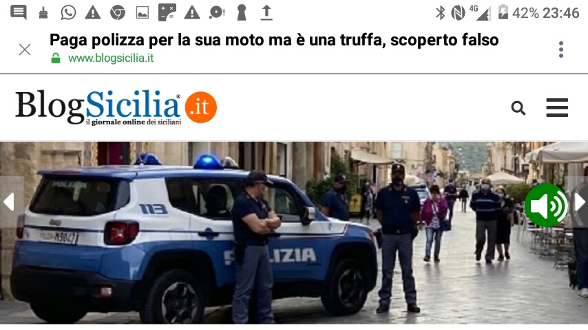 Gli agenti di polizia di Noto hanno denunciato un napoletano di 47 anni per il reato di truffa. L’indagato avrebbe allestito un sito internet spacciandosi per un assicuratore ed all’esca ha abboccato un uomo, residente a Noto, che ha chiesto un preventivo per la polizza della sua moto, una Ducati.