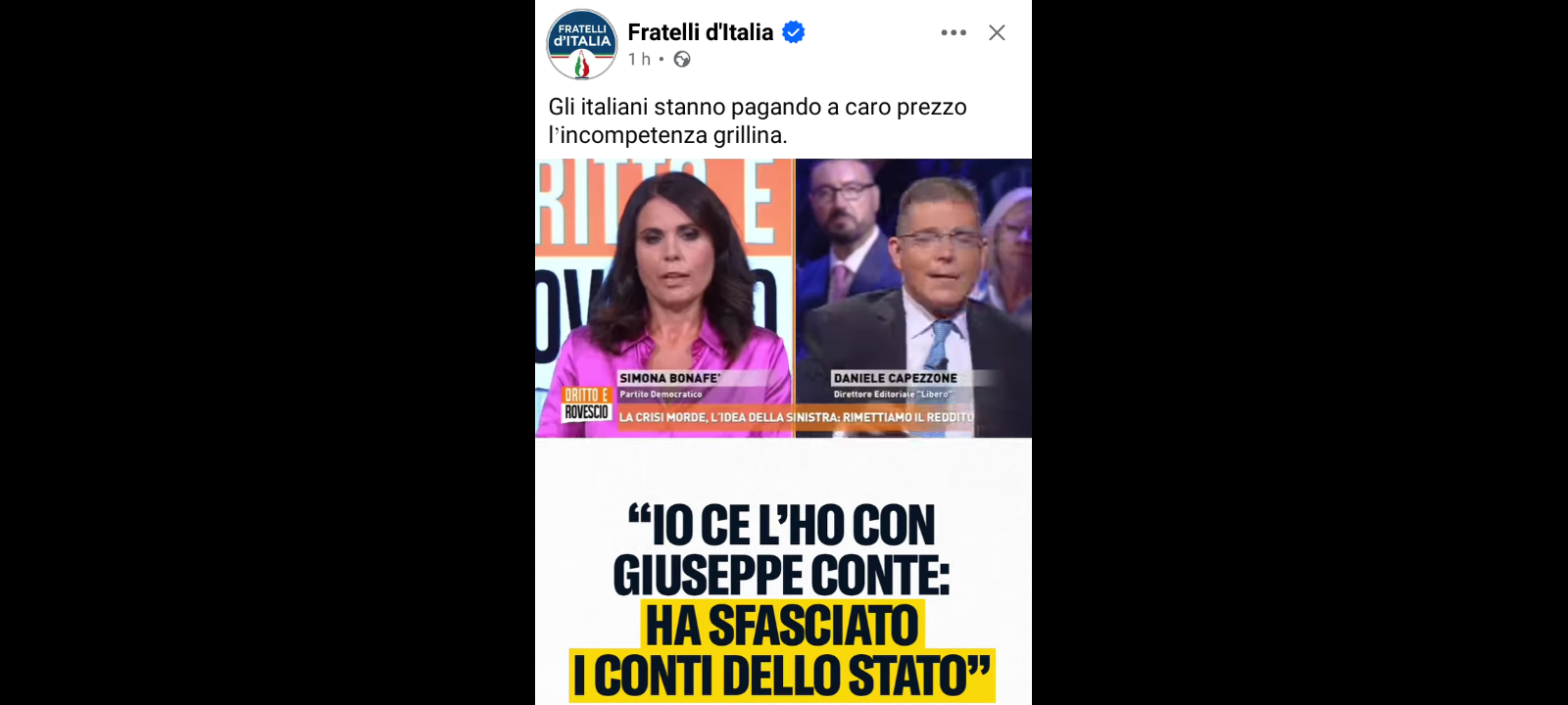 “Gli italiani stanno pagando a caro prezzo l’incompetenza grillina”. Lo evidenziano oggi, in un Post pubblicato sulla loro omonima Pagina Facebook, i responsabili di ‘Fratelli d’Italia’ riprendendo le parole profferite ieri a Dritto e Rovescio condotto da Paolo Del Debbio su Rete4 dopo le 21.20, dal direttore editoriale di Libero, Daniele Capezzone.