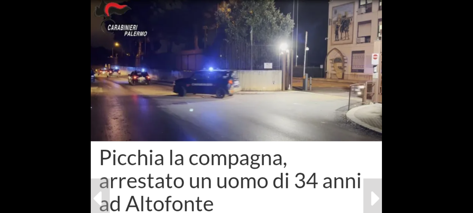 I carabinieri della Compagnia di Monreale hanno arrestato un uomo di 34 anni di Altofonte accusato di avere picchiato la compagna di 33 anni. La donna è stata trasportata in ospedale.
