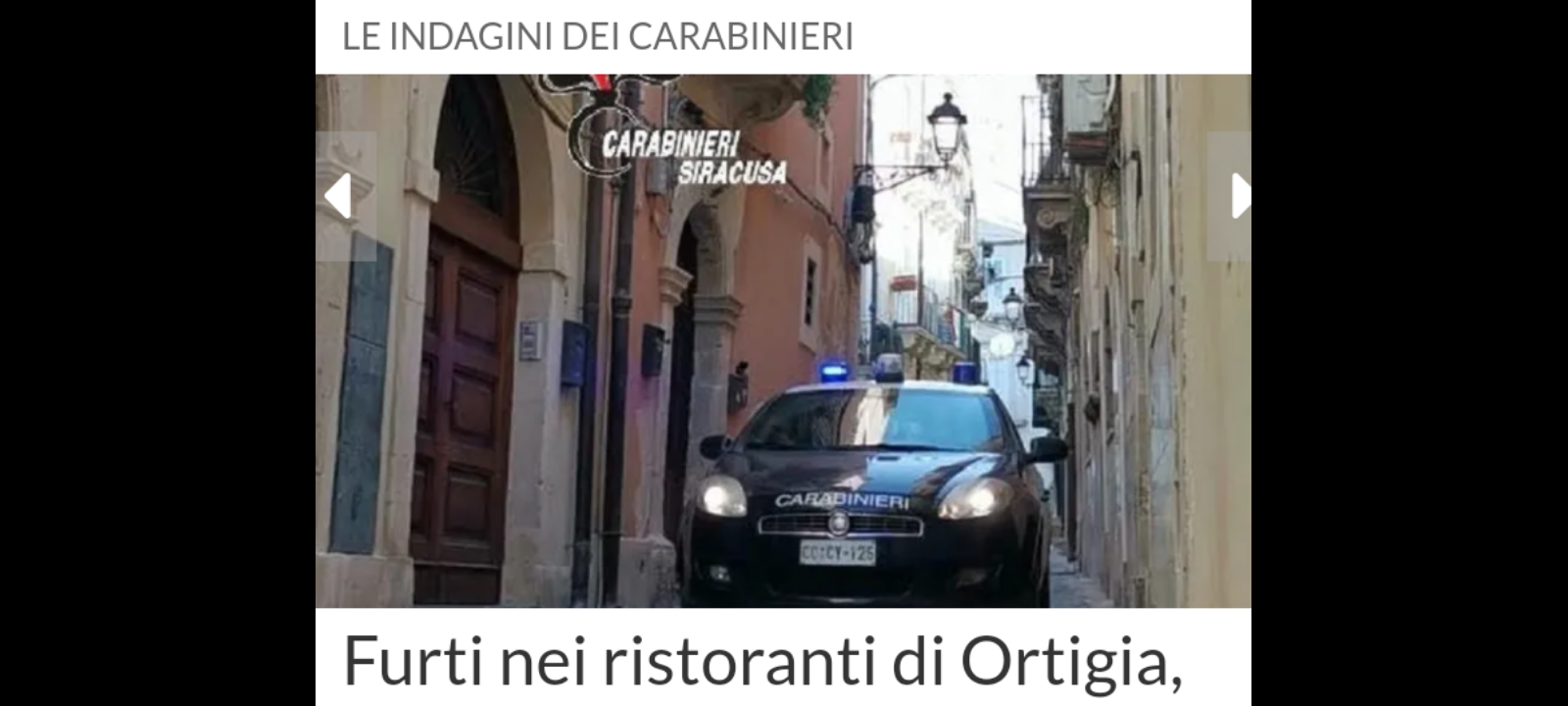 I carabinieri di Ortigia nelle scorse ore…, hanno notificato una misura cautelare emessa dal gip del Tribunale di Siracusa ad un giovane e ad una donna, Adriano Caruso, 32 anni, e Giuseppina Di Benedetto, 46 anni, ritenuti autori dei furti alle attività commerciali e di ristorazione di Ortigia.