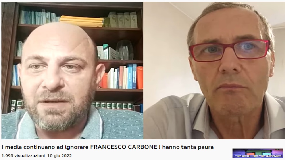 I media continuano ad ignorare Francesco Carbone: “Hanno tanta paura”. Lo hanno riferito ieri su www.youtube.com in ‘Dario orgoglio italiano’, relativamente all’attività prevista domenica 12 giugno in tutta Italia per una iniziativa promossa dal presidente dell’Associazione di promozione sociale Governo del Popolo (costituita nel luglio del 2018 in Provincia di Palermo) per contrastare l’abuso sull’uso del Modello 45 da parte di magistrati deviati che insabbiano i Procedimenti Penali nei quali sono coinvolti loro colleghi appartenenti a Logge massoniche e consorterie mafiose oltre a politici ad Essi affiliati.