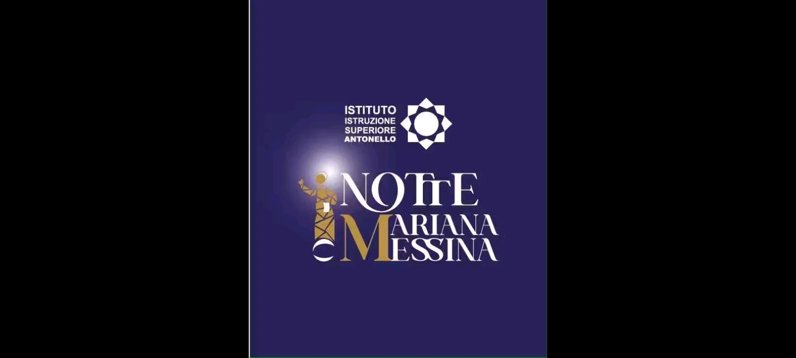 Realizzato dalla Studentessa dell’Istituto d’Istruzione Superiore 𝐀𝐧𝐭𝐨𝐧𝐞𝐥𝐥𝐨 di 𝐌essina, L𝑎u𝑟a I𝑣a𝑙d𝑖 della classe V del settore grafico. L’intervento grafico, promuove la figura della Madonna della Lettera attraverso la sua stilizzazione. Ripropone la statua della Vergine che troneggia sulla stele posta nella zona falcata. Il font utilizzato accresce il valore simbolico di fede e di preziosa spiritualità per la città di 𝐌essina, devota alla SS. 𝐌adre di Dio.
