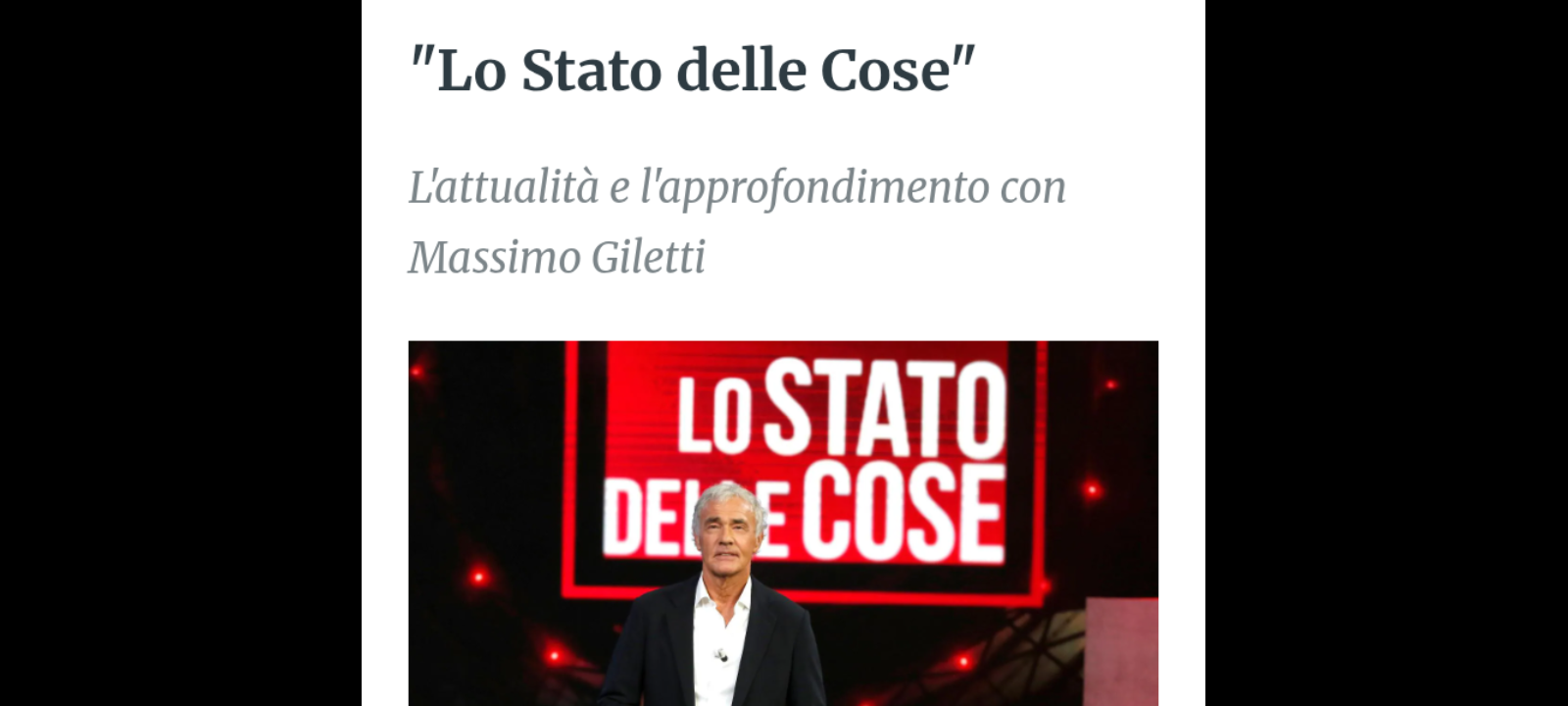 SONO QUESTI, ALCUNI DEI TEMI AL CENTRO DELLA PUNTATA DE “LO STATO DELLE COSE” - IL PROGRAMMA DI MASSIMO GILETTI CHE È INIZIATO IN ONDA LUNEDÌ 9 MARZO ALLE 21.20 SU RAI3