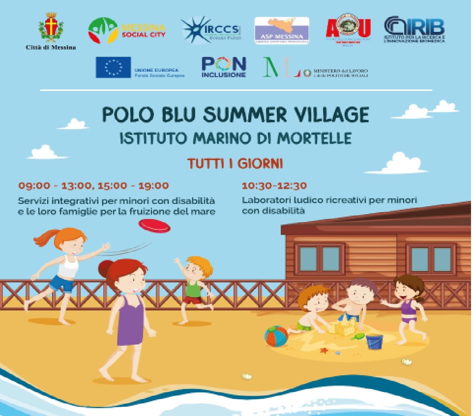 Il Comune di Messina e l’Azienda Speciale Messina Social City, in collaborazione con l’ASP in attuazione anche del progetto “Mare senza frontier”, all’IRCSS Neurolesi, all’Irib Cnr e all’Azienda Ospedaliera Policlinico Universitario “G. Martino” U. O. C. Neuropsichiatra infantile Brucaliffo percorso Autismo, promuovono il progetto Polo Blu – Summer Village rivolto a bimbi e ragazzi con disabilità e alle loro famiglie con l’obiettivo di fornire esperienze di inclusione e socializzazione finalizzate a garantire supporto alle famiglie di minori con disabilità, anche durante la stagione estiva.