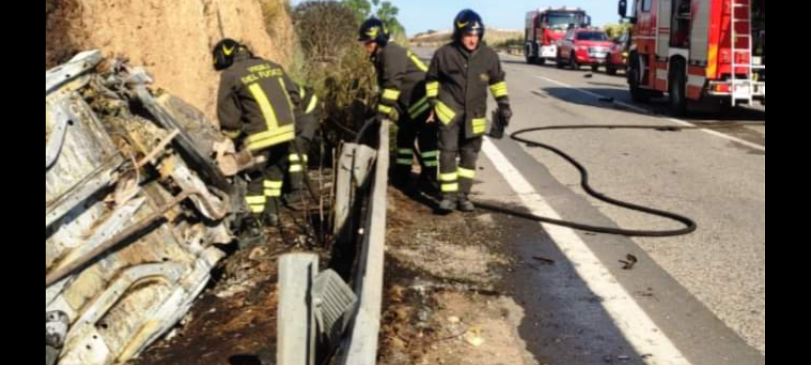 Scatta l’allarme e sul posto arrivano tre ambulanze e due squadre dei vigili del fuoco provenienti da Scicli ma al loro arrivo la tragedia è, ormai, consumata. Il fuoco si è esaurito e il conducente della vettura è morto carbonizzato. Estremamente difficile risalire all’identità della vittima. Solo in serata, dopo che i vigili del fuoco sono riusciti a rimuovere l’auto dalla posizione assurda in cui sin trovava, arriva notizia che dovrebbe trattarsi di una donna.