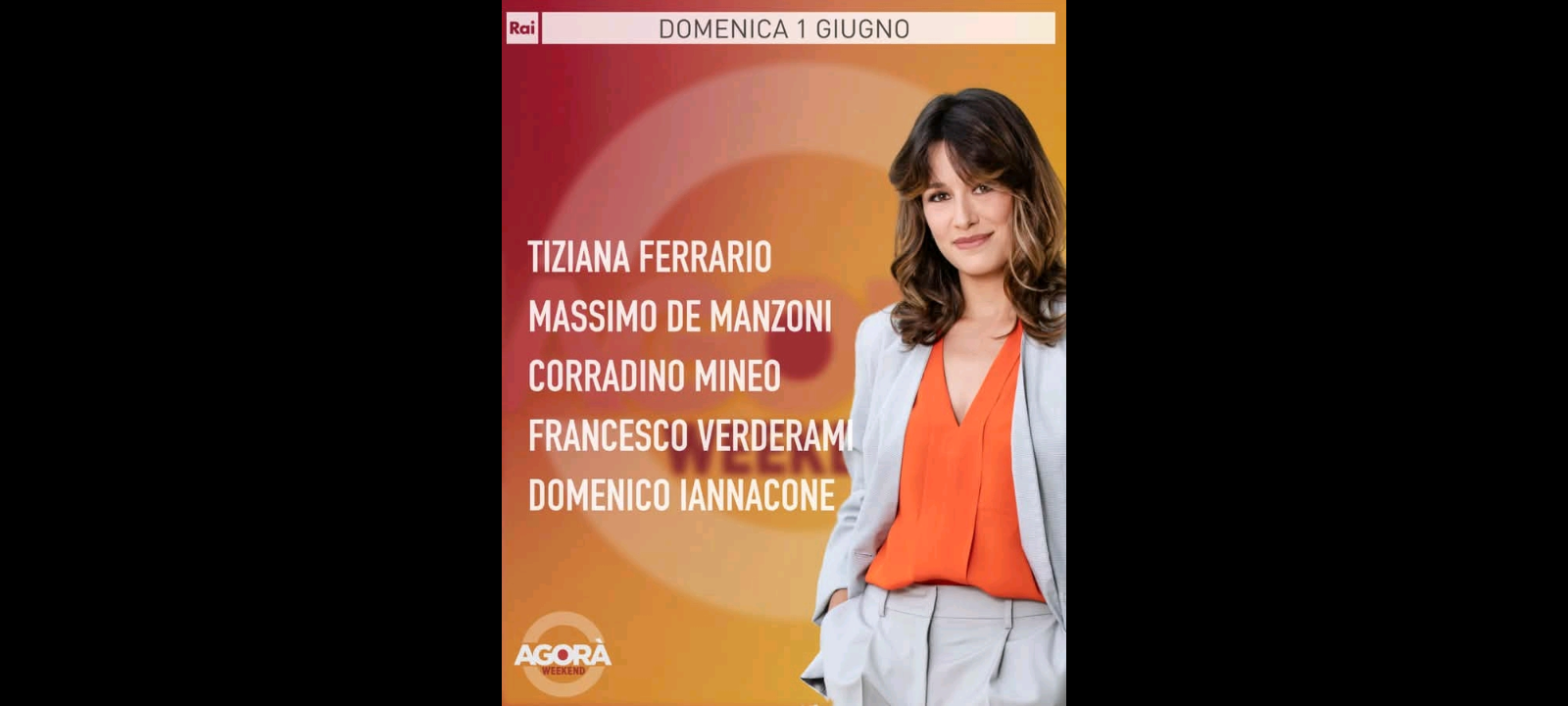 ‘Il punto sulla politica interna e internazionale con un approfondimento sulle ultime notizie sulla guerra dei dazi e sulla guerra in Ucraina, con negoziati diretti tra Mosca e Kiev lunedì 2 giugno a Istanbul’. Sono questi…, domenica 1° giugno 2025 alle 08.00 su Rai3, i temi di “Agorá Weekend”… il programma condotto da Sara Mariani.