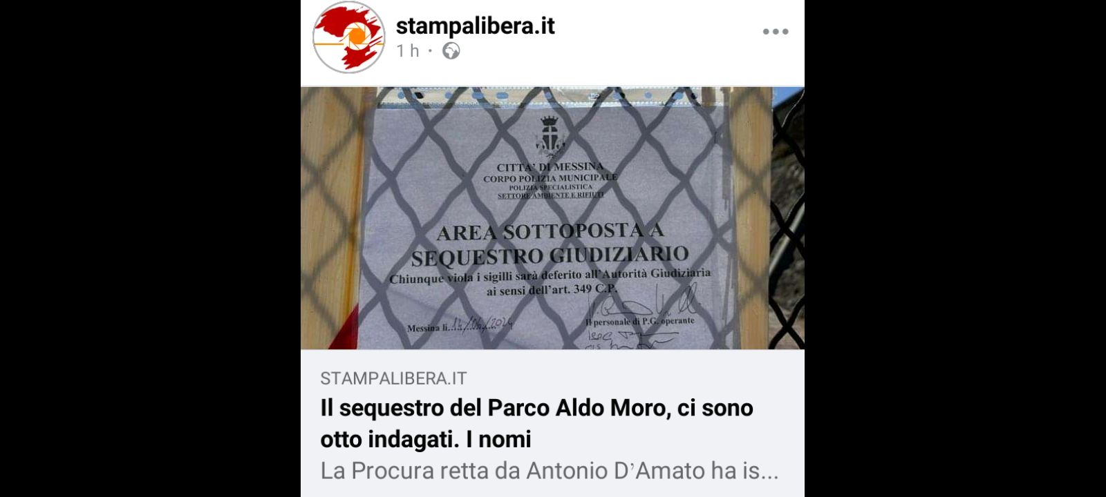 Il sequestro del Parco Aldo Moro a Messina, ci sono otto indagati…, i nomi: la Procura retta da Antonio D’Amato ha iscritto otto persone nel registro degli indagati per il clamoroso sequestro del Parco Aldo Moro. Ne da’ notizia oggi il quotidiano Gazzetta del Sud.